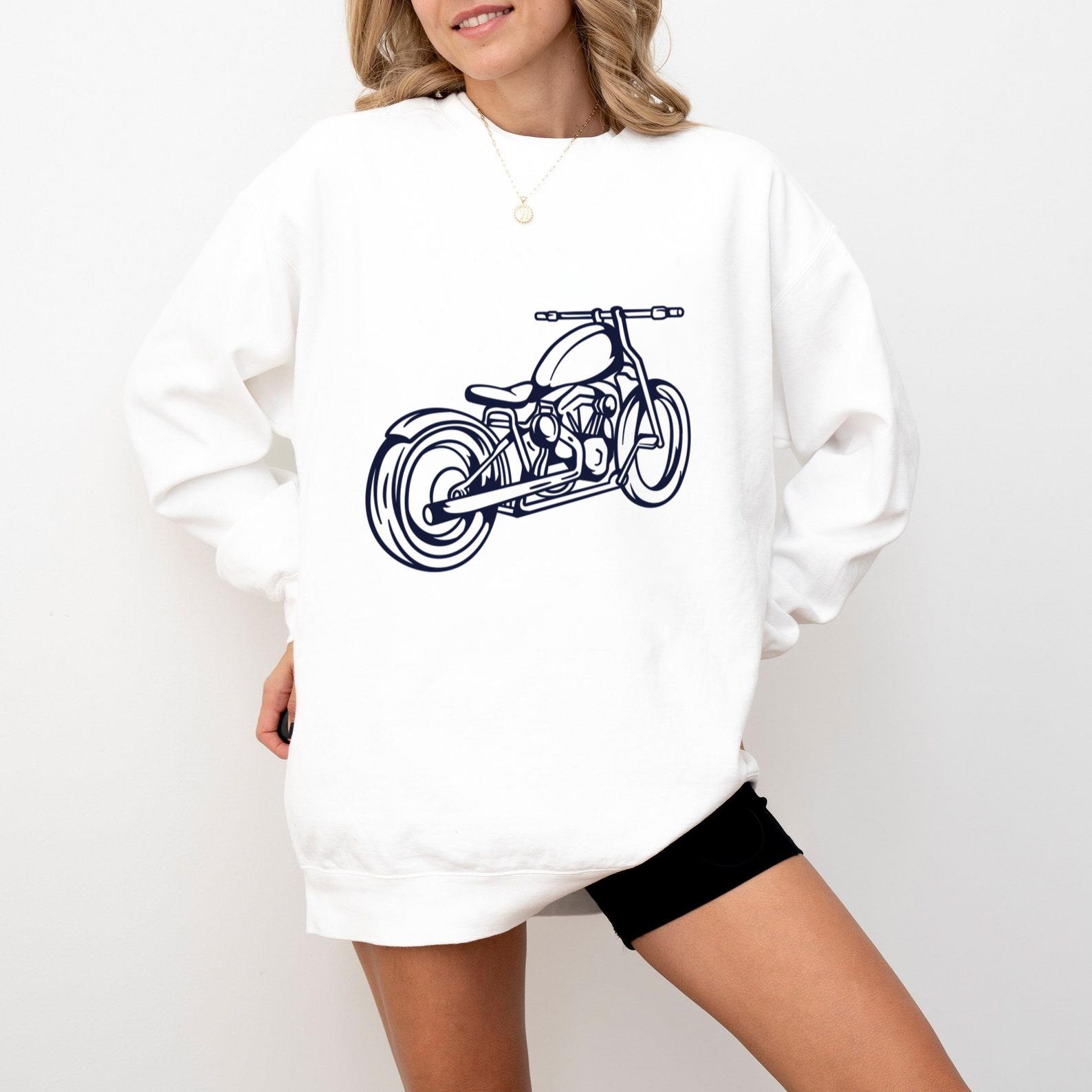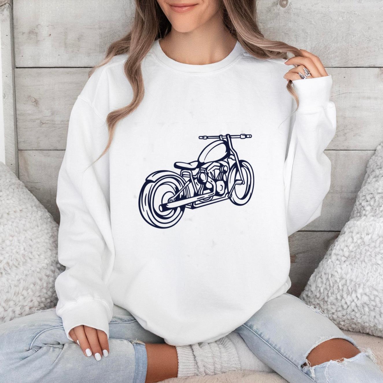 The kind of cozy you’ll want to live in. Bold Motorcycle Outline Graphic Design Sweatshirt Sweatshirt ,perfect for staying warm or sending a warm hug to someone.
