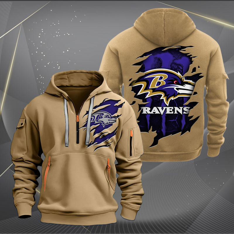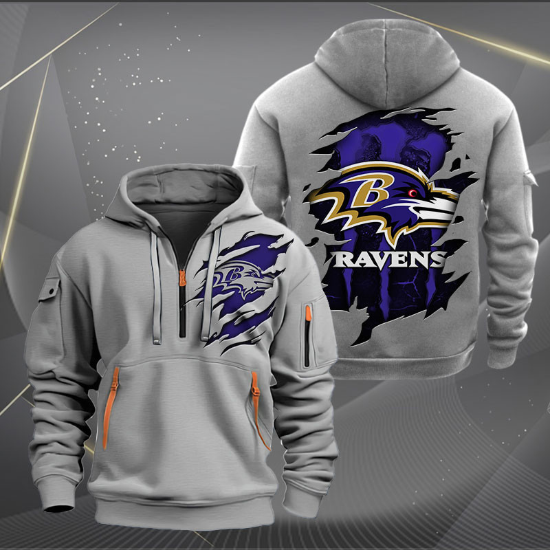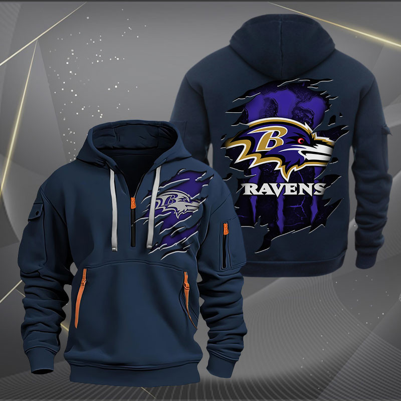 Baltimore Ravens Scratch Logo NFL Quarter Zip Hoodie Style 238