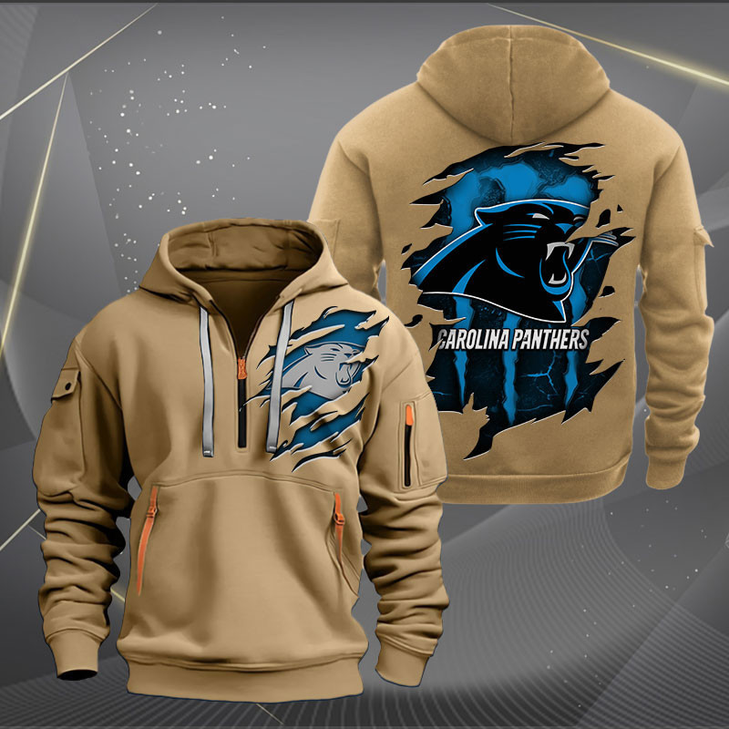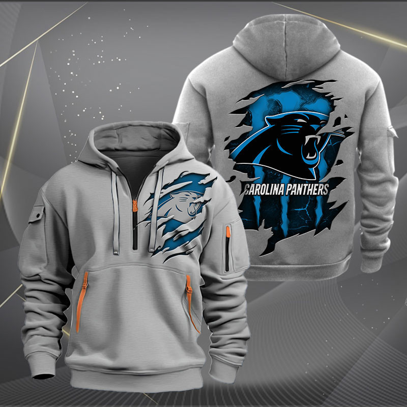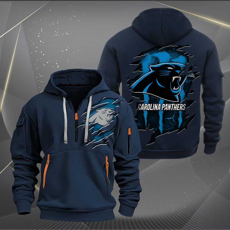 Carolina Panthers Scratch Logo NFL Quarter Zip Hoodie Style 222