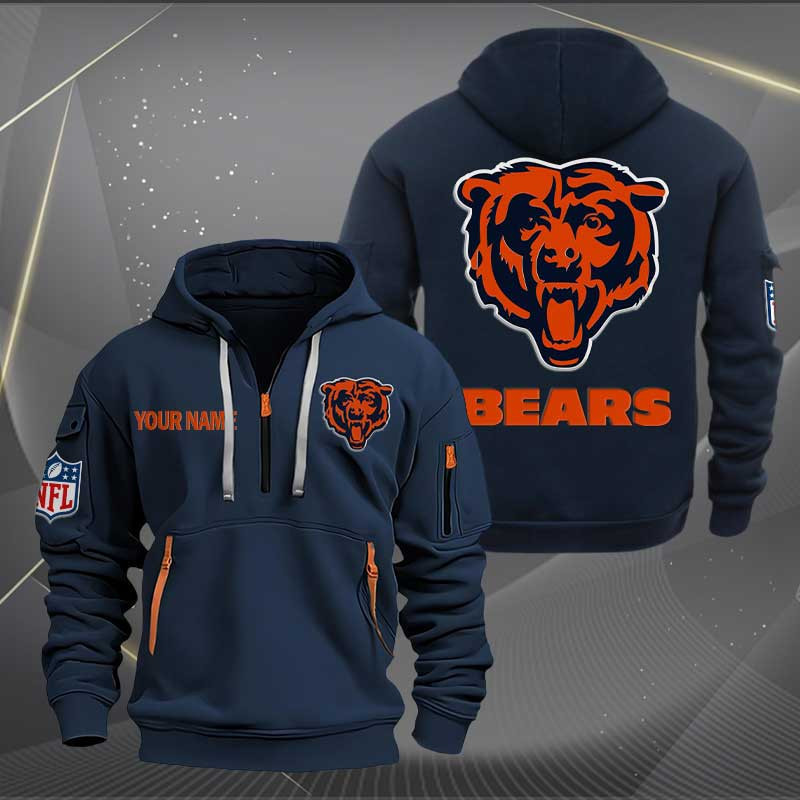Chicago Bears Logo NFL Quarter Zip Hoodie Style 252