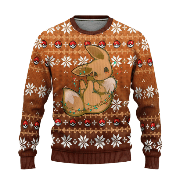 Get cozy and festive with our Pokemon Eevee Ugly Christmas Sweater! This premium blend of 95% Polyester and 5% Spandex offers a soft, stretchy, breathable fit for Christmas parties, family gatherings, or casual wear. The advanced dye-sublimation printing ensures vibrant, long-lasting colors that resist fading, cracking, or peeling. Its not just a sweater but a statement piece perfect for spreading holiday cheer all season long. Surprise your loved ones with this unique and funny Christmas sweater theyll love to wear year after year. Features dye-sublimation printing for bold, vivid, and fade-resistant colors, making it ideal for Ugly Sweater parties, family photos, and holiday gifts.