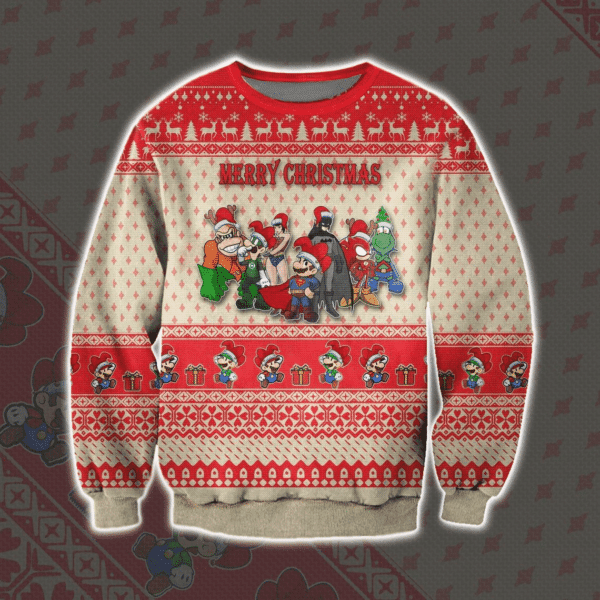 Embrace the holiday spirit with our cozy and fun Super Mario-themed Ugly Christmas Sweater! Made of high-quality 95% Polyester and 5% Spandex, this soft, stretchy, and breathable sweater features vibrant colors that won?t fade. It?s perfect for Christmas parties, family gatherings, or casual wear. Surprise your loved ones with this unique and festive sweater idea that promises comfort and style season after season. Great for Ugly Sweater parties, holiday events, family photos, or as a delightful gift!