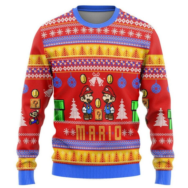 Get cozy and festive with our Mario-themed Ugly Christmas Sweater! Made with a premium blend of polyester and spandex, this sweater is soft, stretchy, and breathable. Perfect for Christmas parties, family gatherings, or casual wear. Features vivid and fade-resistant dye-sublimation printing. Surprise your loved ones with this unique and fun holiday sweater thats perfect for ugly sweater parties, festive events, family photos, or as a whimsical gift. Keep the holiday cheer alive all season long!