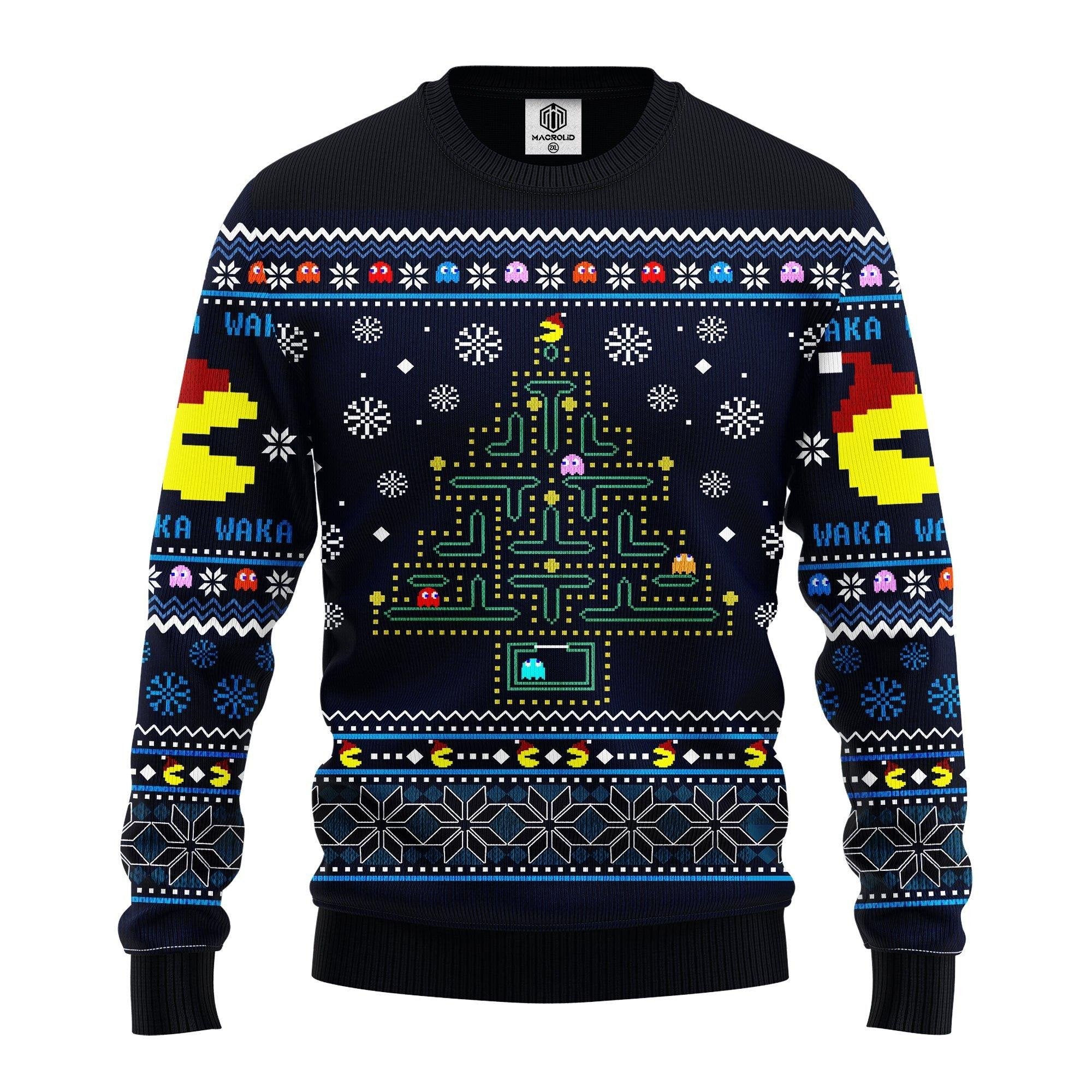 Get cozy, fun, and festive with our Pacman-themed Ugly Christmas Sweater! Embrace the holiday spirit with our premium blend of 95% Polyester and 5% Spandex for superior comfort. This sweaters advanced dye-sublimation printing ensures bold, vibrant, and long-lasting colors that stand out at Christmas parties, family gatherings, or casual wear. Spread cheer with this statement piece that epitomizes the holiday season. Ideal for Ugly Sweater parties, Christmas events, family photos, and memorable holiday gifts that last year after year.