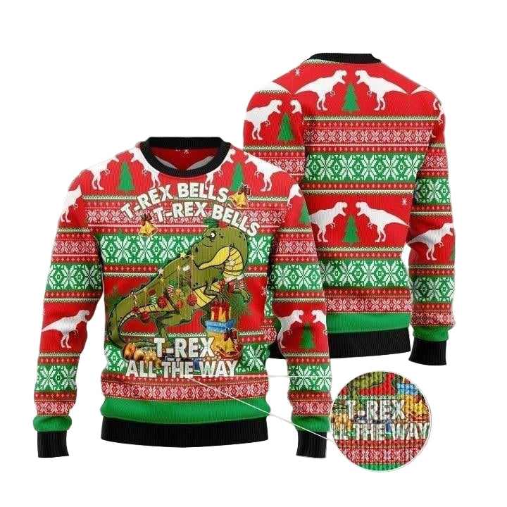 Experience Cozy Holiday Vibes with Our Funny T-rex Ugly Christmas Sweater! Made of high-quality fabric, this festive sweater is soft, stretchy, and breathable, perfect for Christmas parties or casual hangouts. The advanced dye-sublimation printing ensures vibrant, long-lasting colors that withstand washes. Its not just clothing, its a joyful statement piece that encapsulates the holiday spirit. Gift one today to spread laughter and cheer!