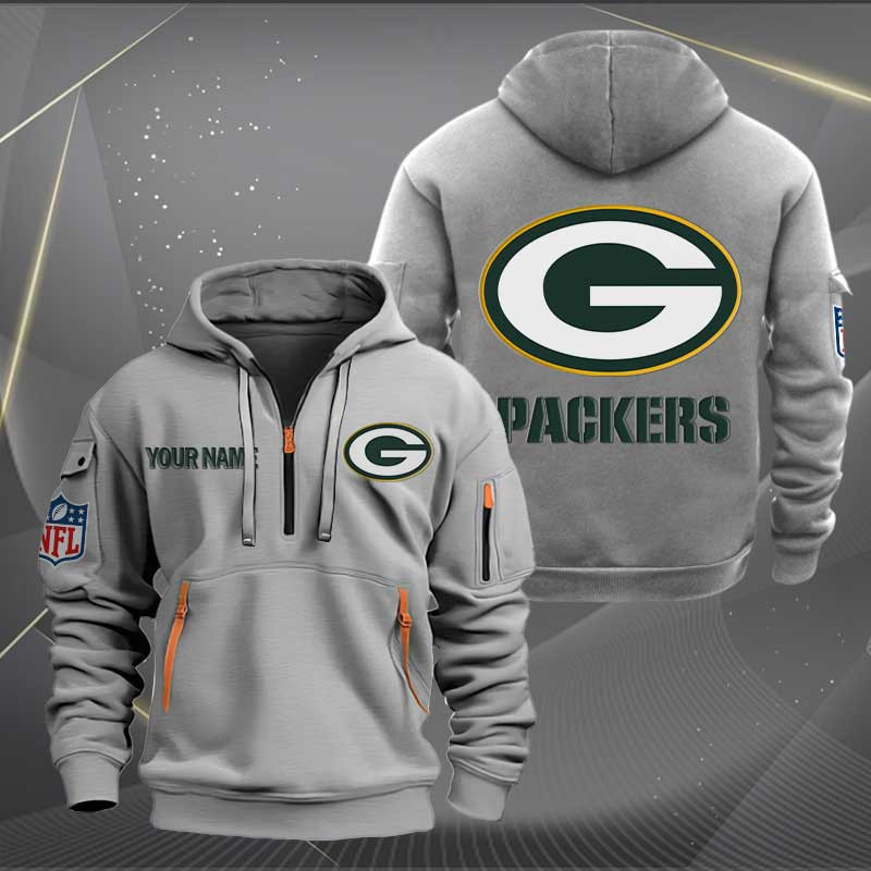 Green Bay Packers Logo NFL Quarter Zip Hoodie Style 260