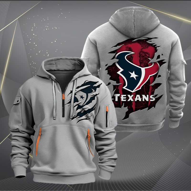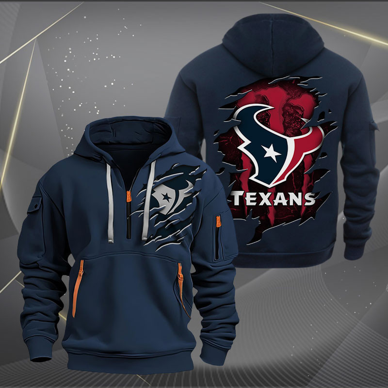Houston Texans Scratch Logo NFL Quarter Zip Hoodie Style 225