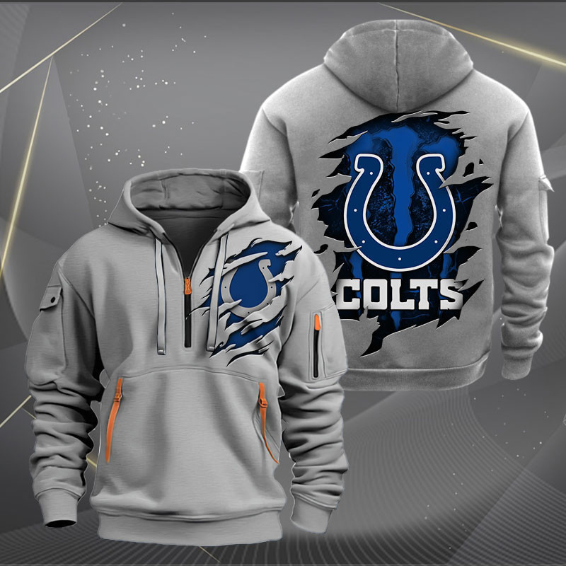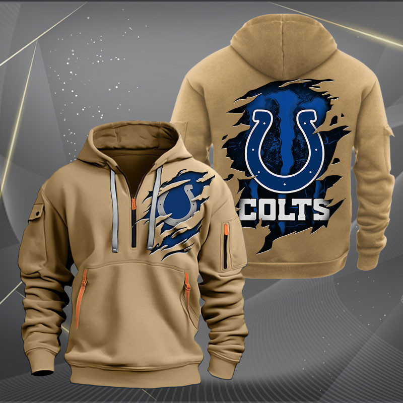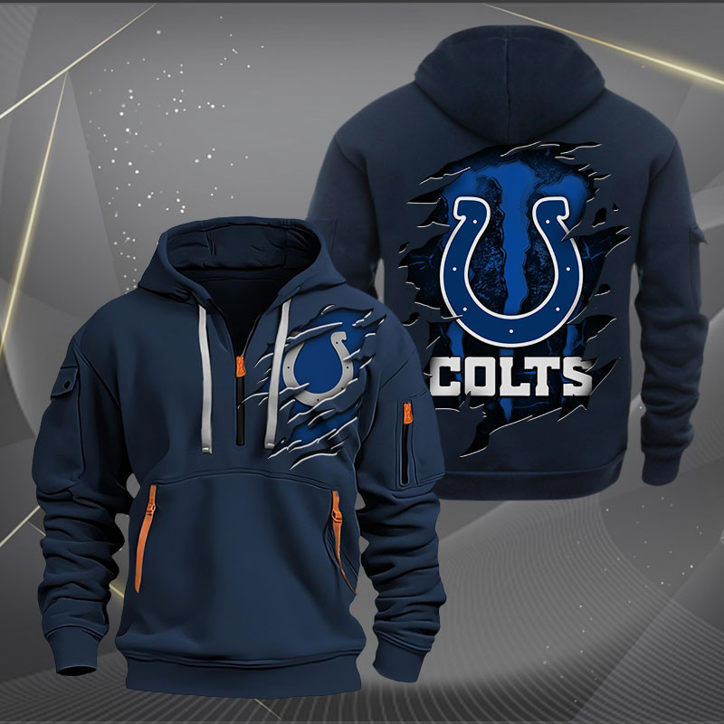 Indianapolis Colts Scratch Logo NFL Quarter Zip Hoodie Style 246