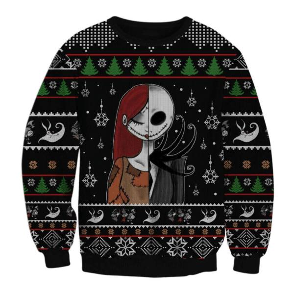 Get cozy and festive with our Jack Skellington and Sally Ugly Christmas Sweater! Made from a premium blend of 95% Polyester and 5% Spandex, this soft, stretchy, and breathable sweater is perfect for any holiday occasion. The advanced dye-sublimation printing ensures bold, vibrant colors that won?t fade, crack, or peel even after multiple washes. Spread comfort, laughter, and festive cheer with this standout holiday piece!