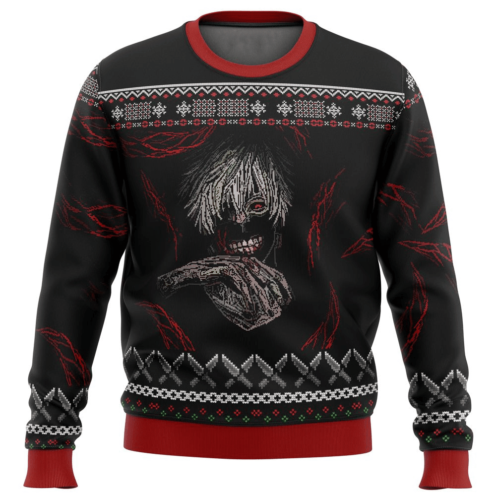 Get cozy and festive with our Ken Kaneki Tokyo Ghoul Ugly Christmas Sweater! Made with a premium blend of 95% Polyester and 5% Spandex for a soft, stretchy, and breathable fit. Stand out at holiday gatherings with bold, vivid, and fade-resistant designs. Its not just a sweater; its a statement piece that keeps the holiday spirit alive! Perfect for ugly sweater parties, Christmas events, family photos, or as a fun holiday gift that brings comfort, laughter, and cheer.