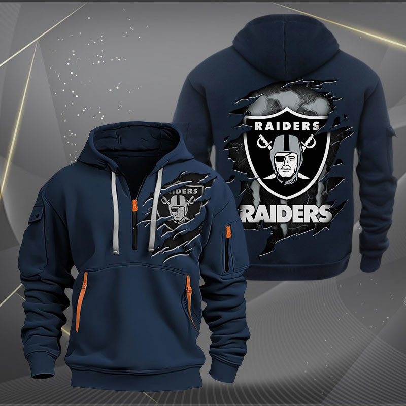 Las Vegas Raiders Scratch Logo NFL Quarter Zip Hoodie Style 230