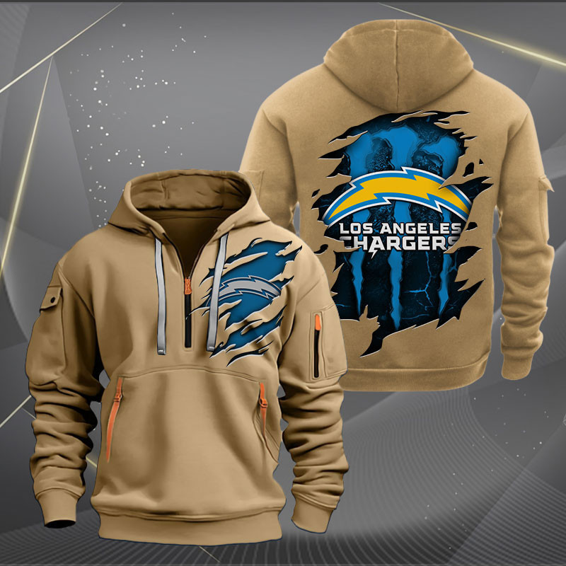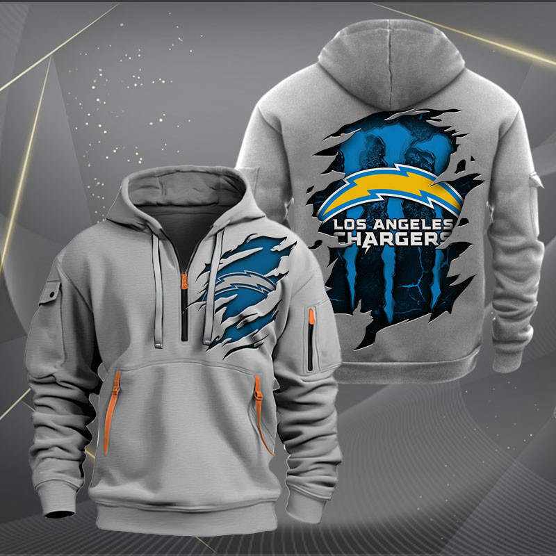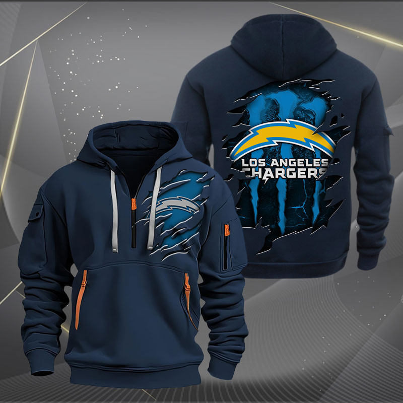 Los Angeles Chargers Scratch Logo NFL Quarter Zip Hoodie Style 245