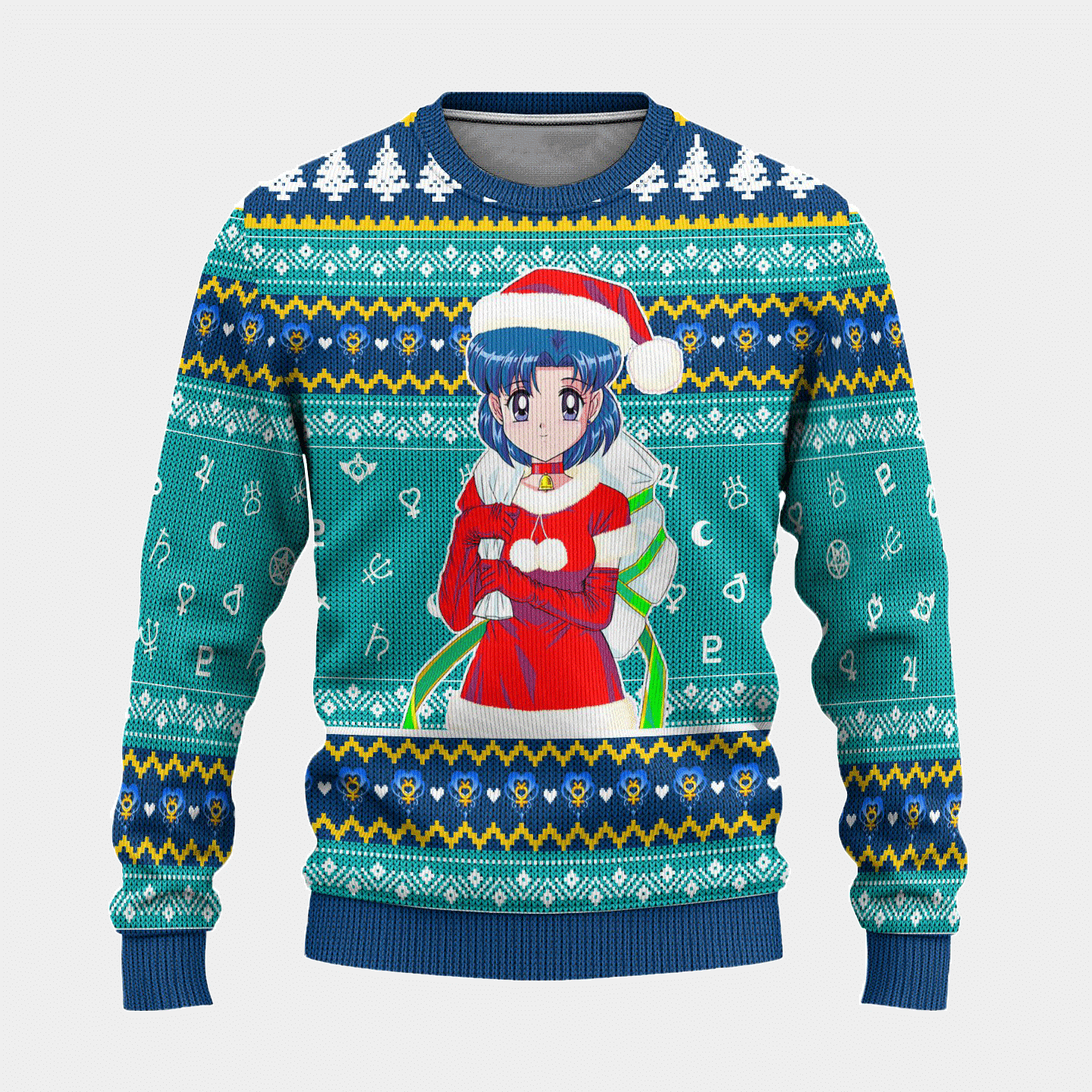 Stay cozy and festive with our Sailor Moon Anime Sailor Mercury Ugly Christmas Sweater! Made with a premium blend of 95% Polyester and 5% Spandex, this soft, stretchy, and breathable holiday sweater is perfect for Christmas parties, family gatherings, or lounging. Featuring advanced dye-sublimation printing for vibrant colors that last wash after wash, this statement piece keeps the holiday spirit alive all season long. Its a great gift idea for friends, family, or coworkers, perfect for Ugly Sweater parties, Christmas events, family photos, or as a fun holiday present.