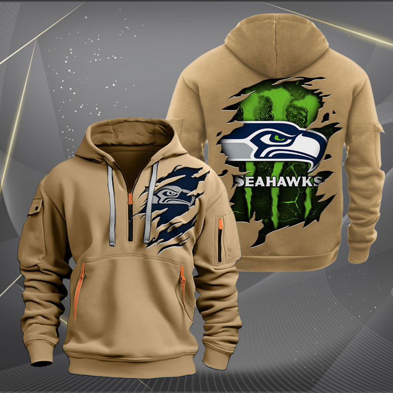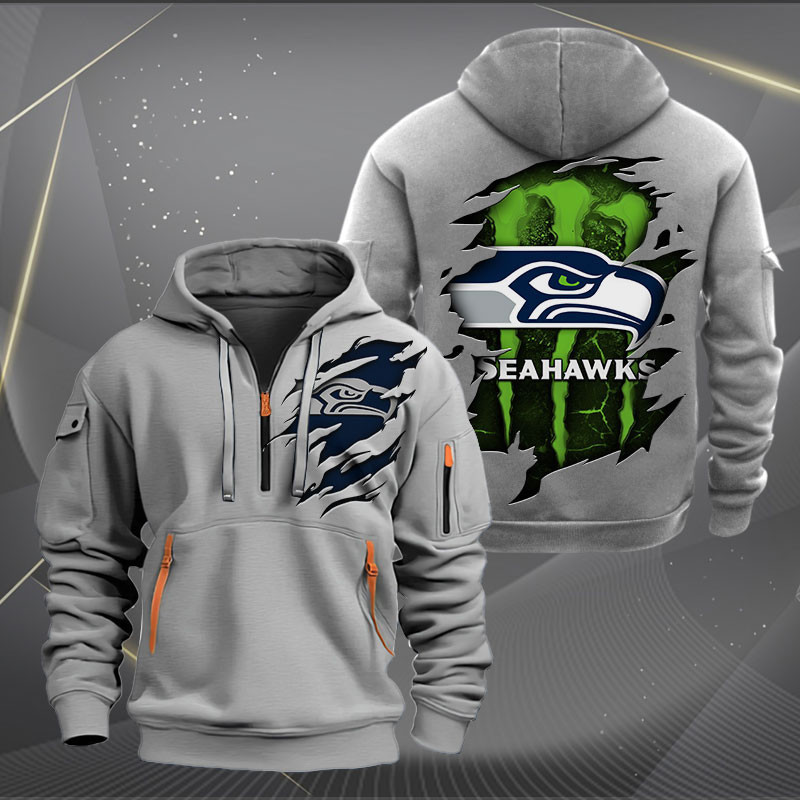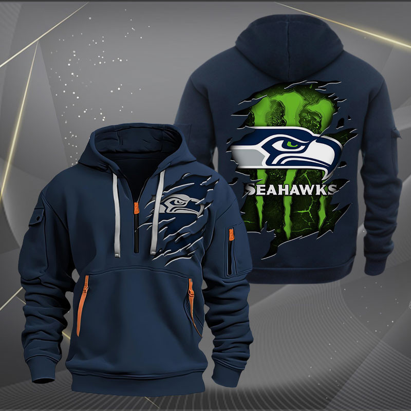 Seattle Seahawks Scratch Logo NFL Quarter Zip Hoodie Style 239