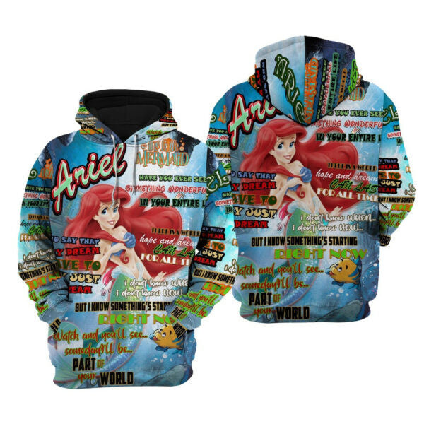 Buildercar – Ariel Punk Words Pattern Disney Fan Gift Stylist Unisex Cartoon Graphic Outfits Aop Hoodie 1628