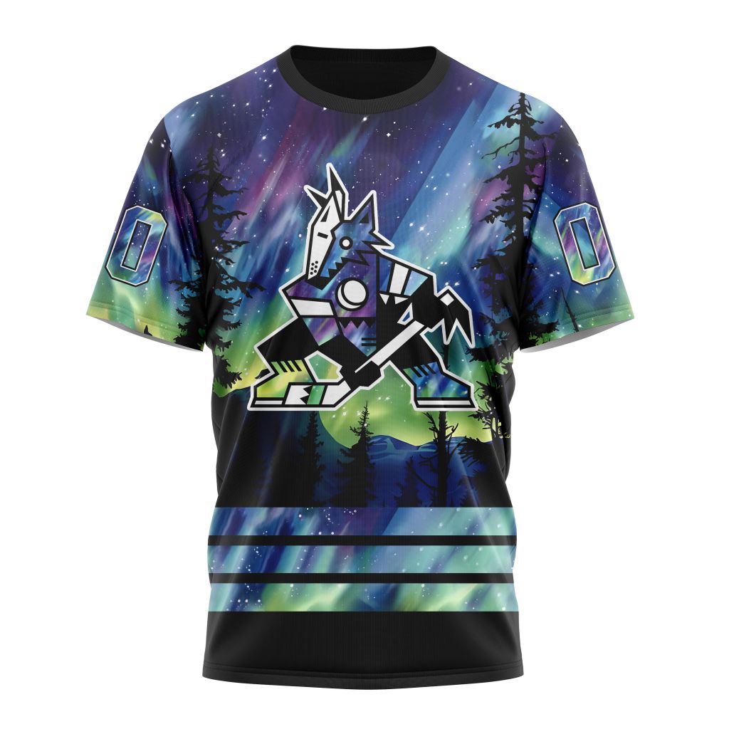 Arizona Coyotes With Northern Lights 01 Personalized Name And Number T-Shirt