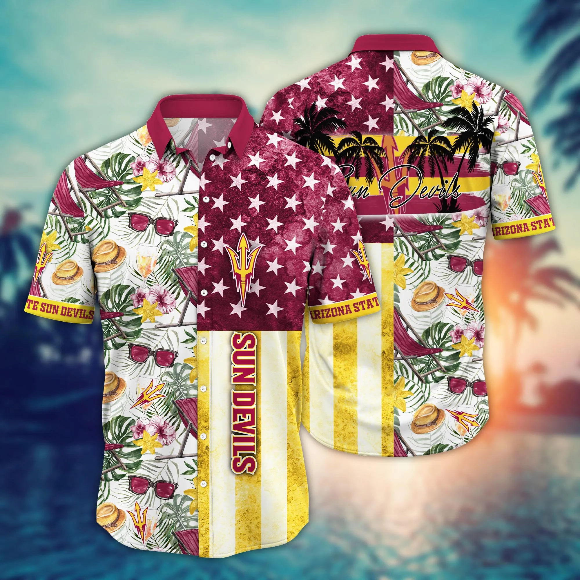 Arizona State Sun Devils Tropical Palm US Flag Pattern Hawaiian Shirt