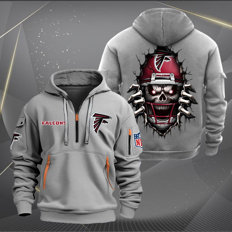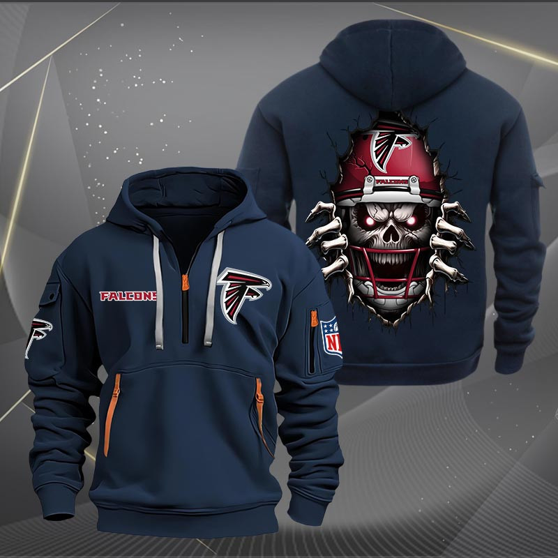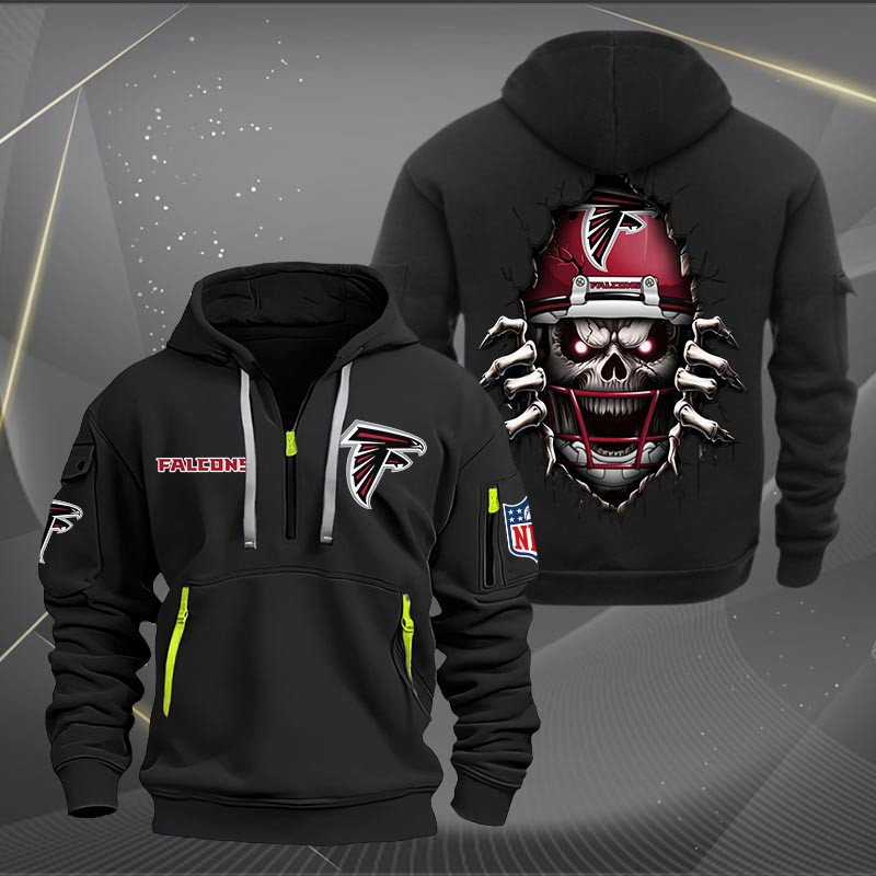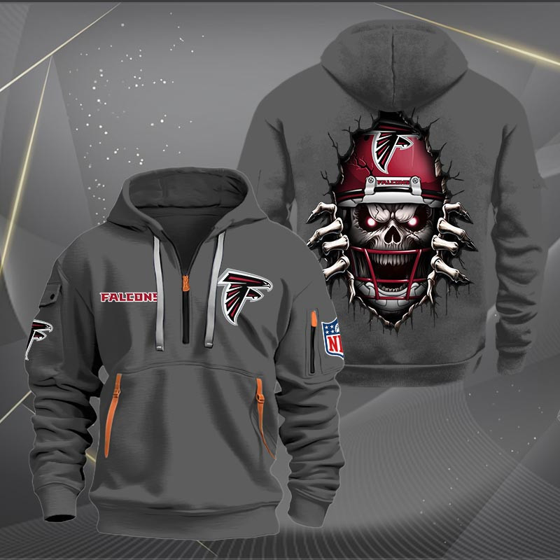 Atlanta Falcons Football Player Skull Quarter Zip Hoodie