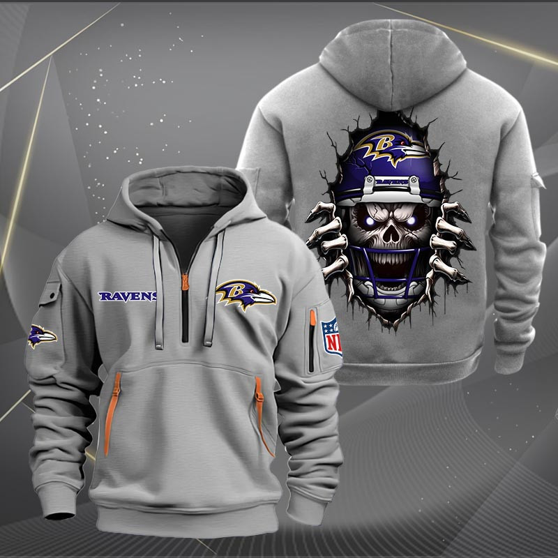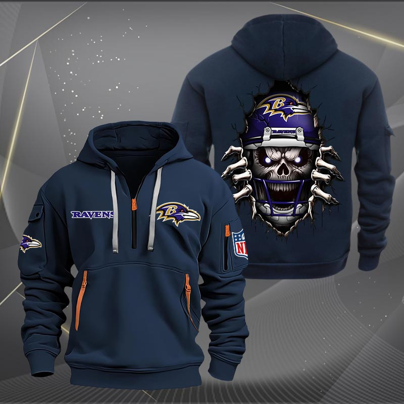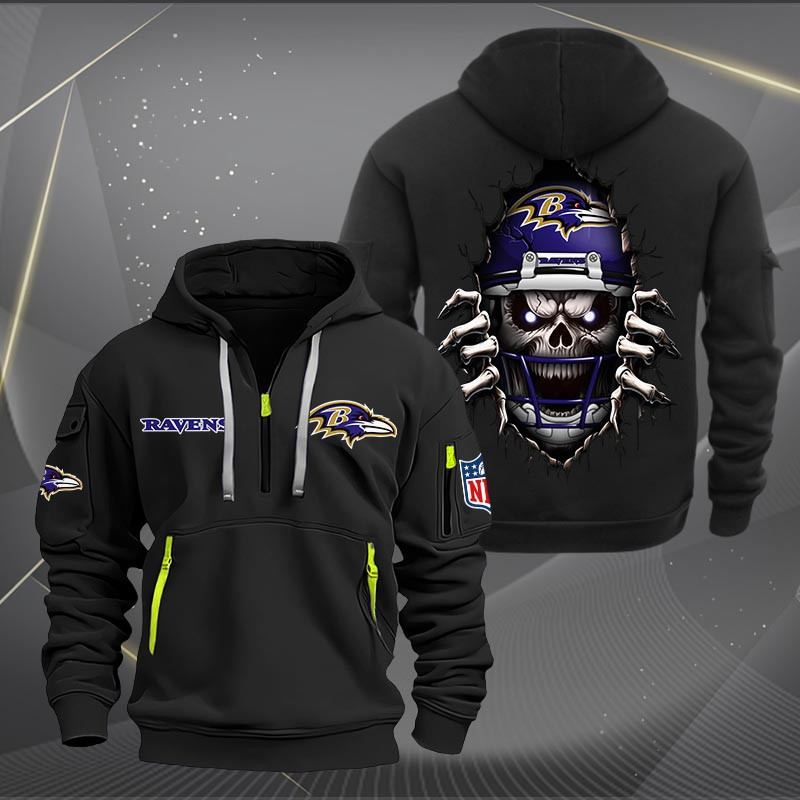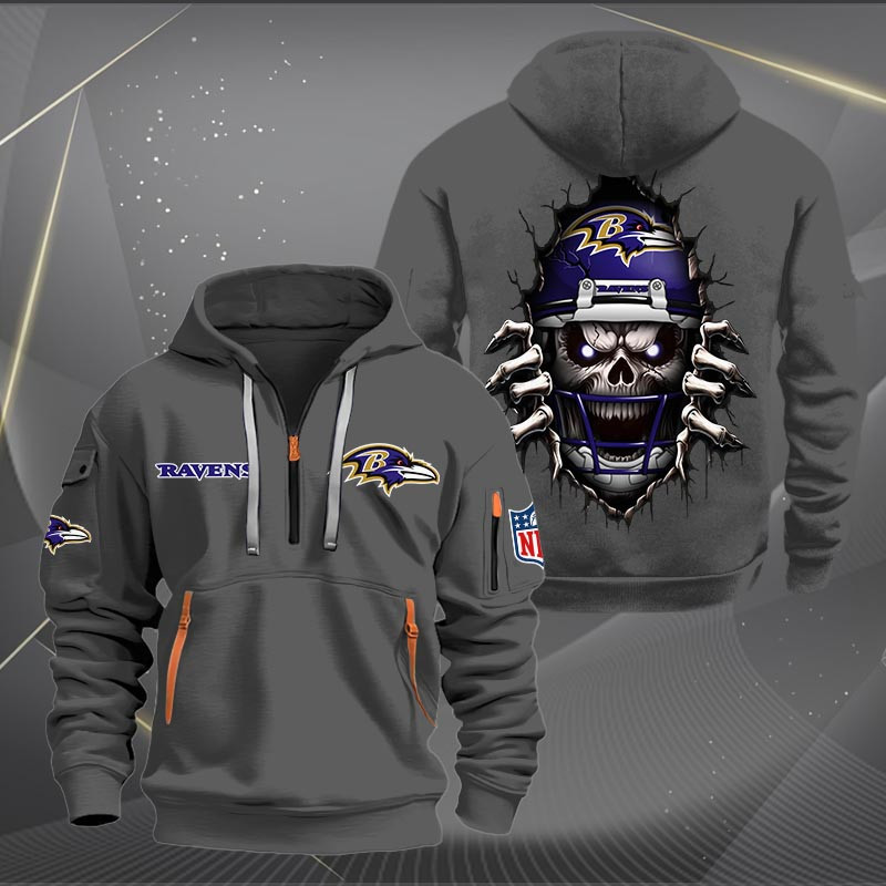 Baltimore Ravens Football Player Skull Quarter Zip Hoodie
