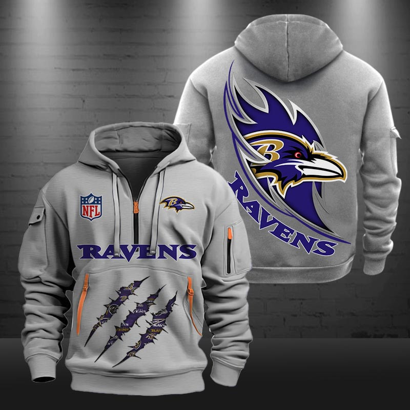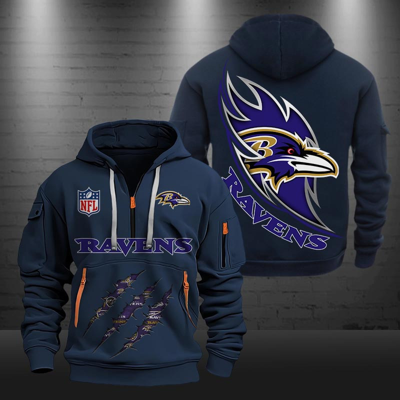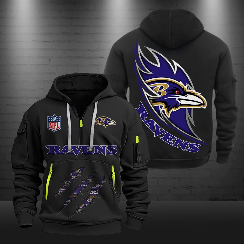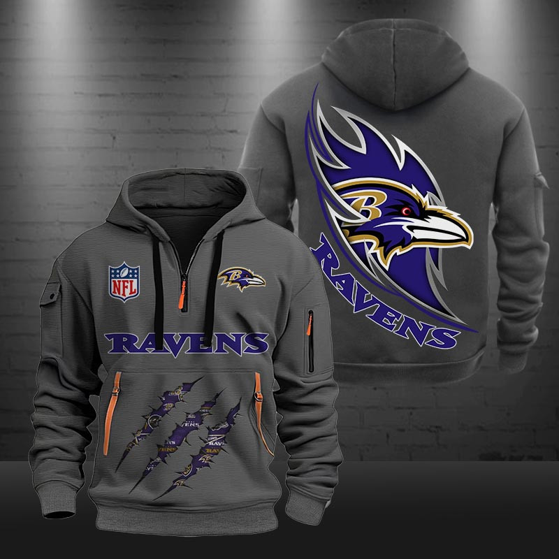 Baltimore Ravens Monster Scratch Logo NFL Quarter Zip Hoodie