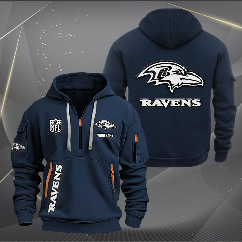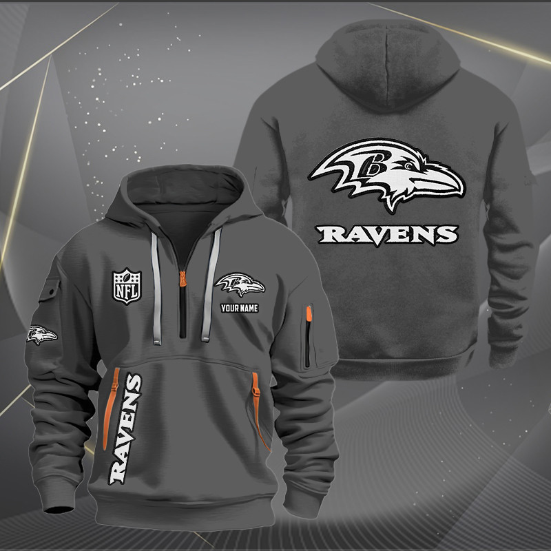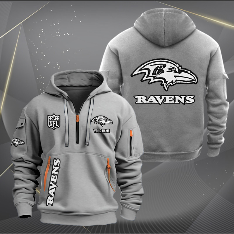 Baltimore Ravens White Logo NFL Quarter Zip Hoodie