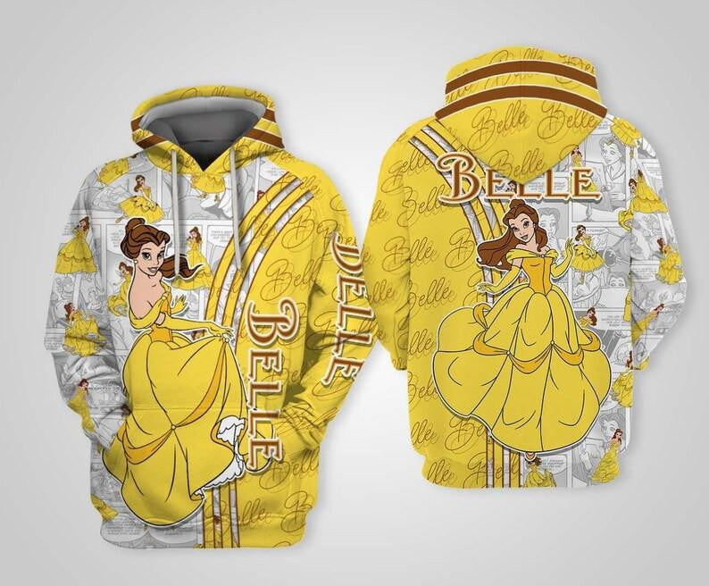 Buildercar – Beauty And The Beast Disney Cartoon, Belle Princess Comics Book Patterns All Over Print Hoodie