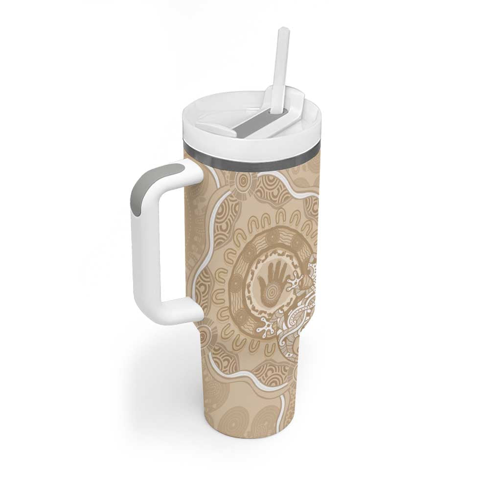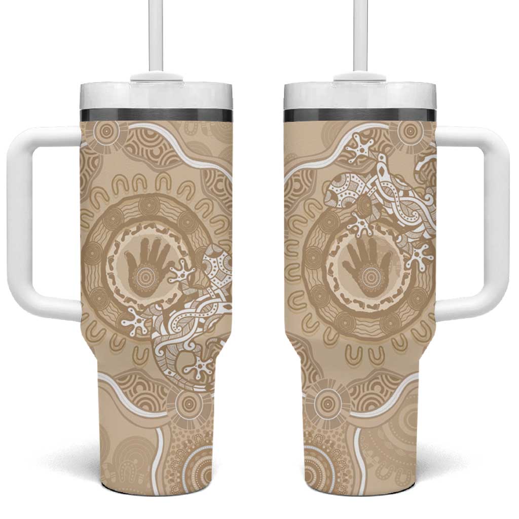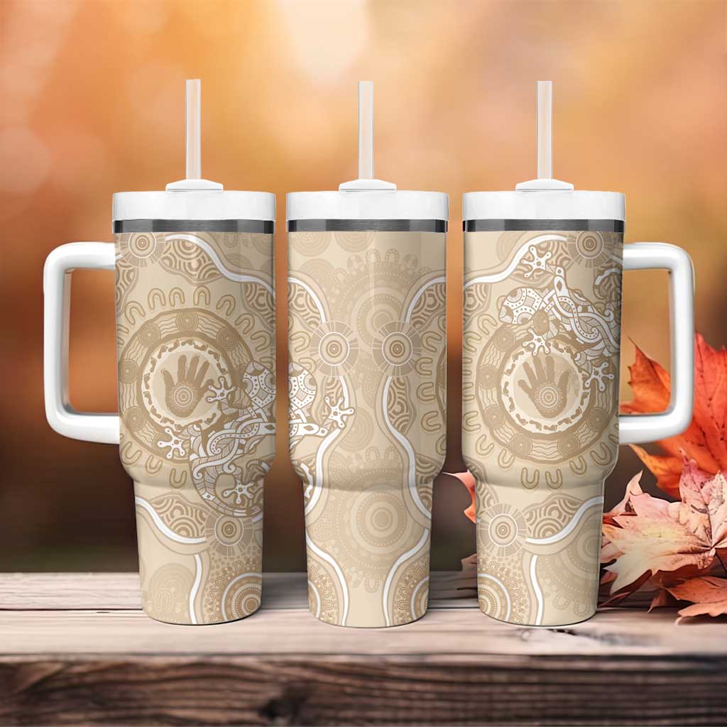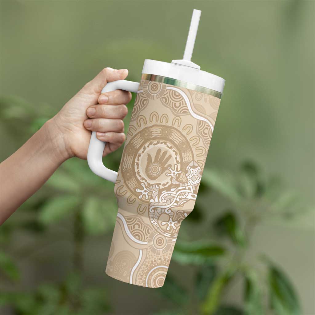 Buildercar – Beige Australia Lizard With Aboriginal Art Custom Stanley Quencher 40oz Stainless Steel Tumbler With Handle