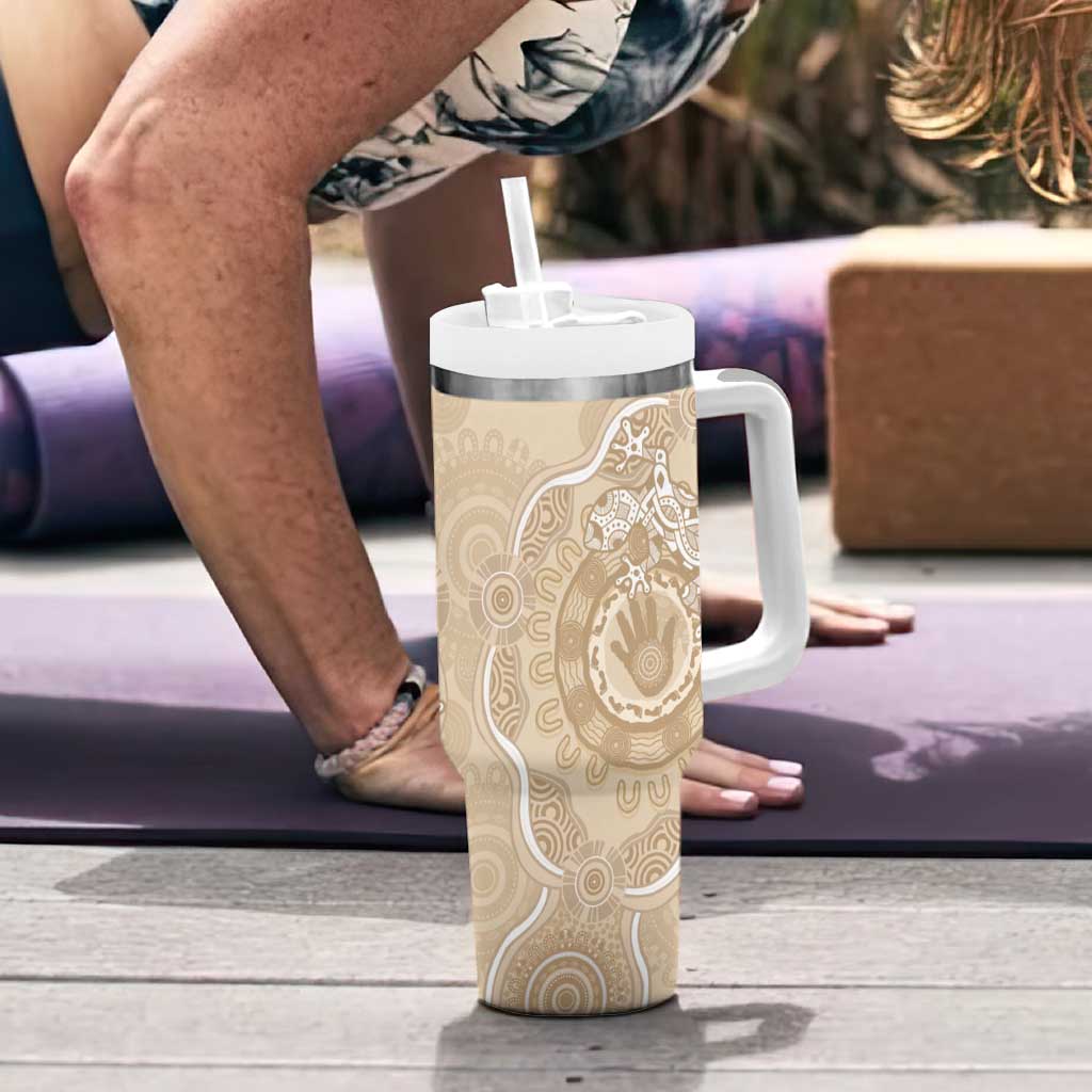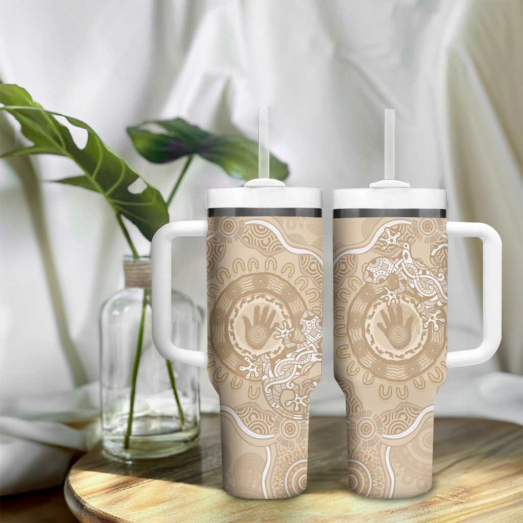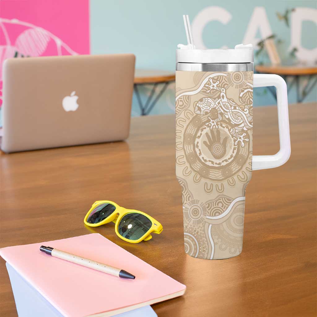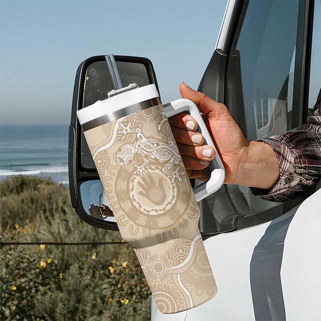 Buildercar – Beige Australia Lizard With Aboriginal Art Custom Stanley Quencher 40oz Stainless Steel Tumbler With Handle