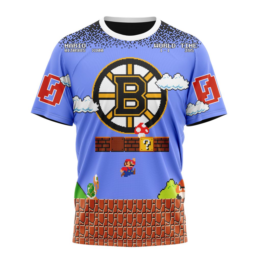 Boston Bruins Special Kits With Super Mario Game Design Personalized Name And Number T-Shirt