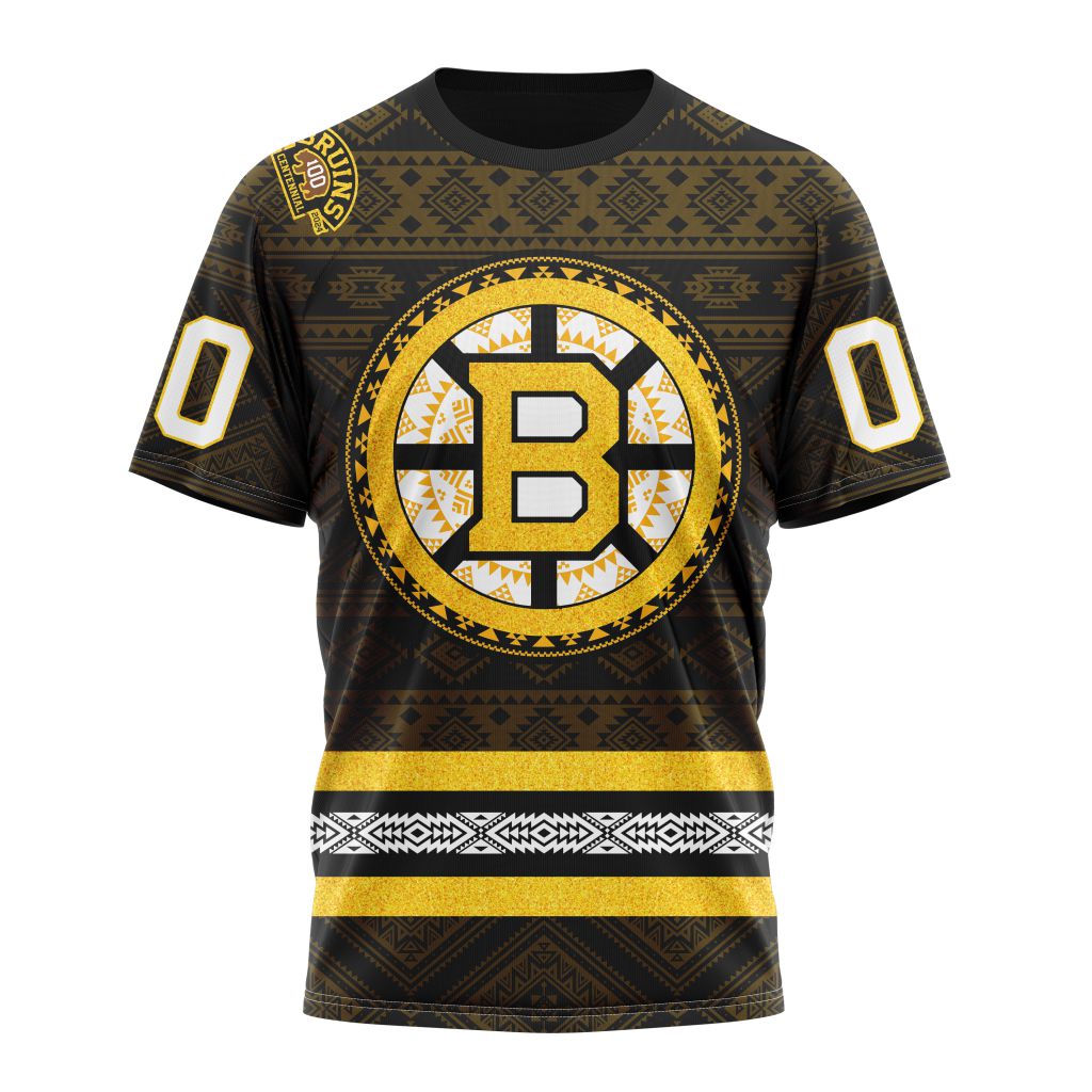 Boston Bruins With Native Pattern Personalized Name And Number T-Shirt