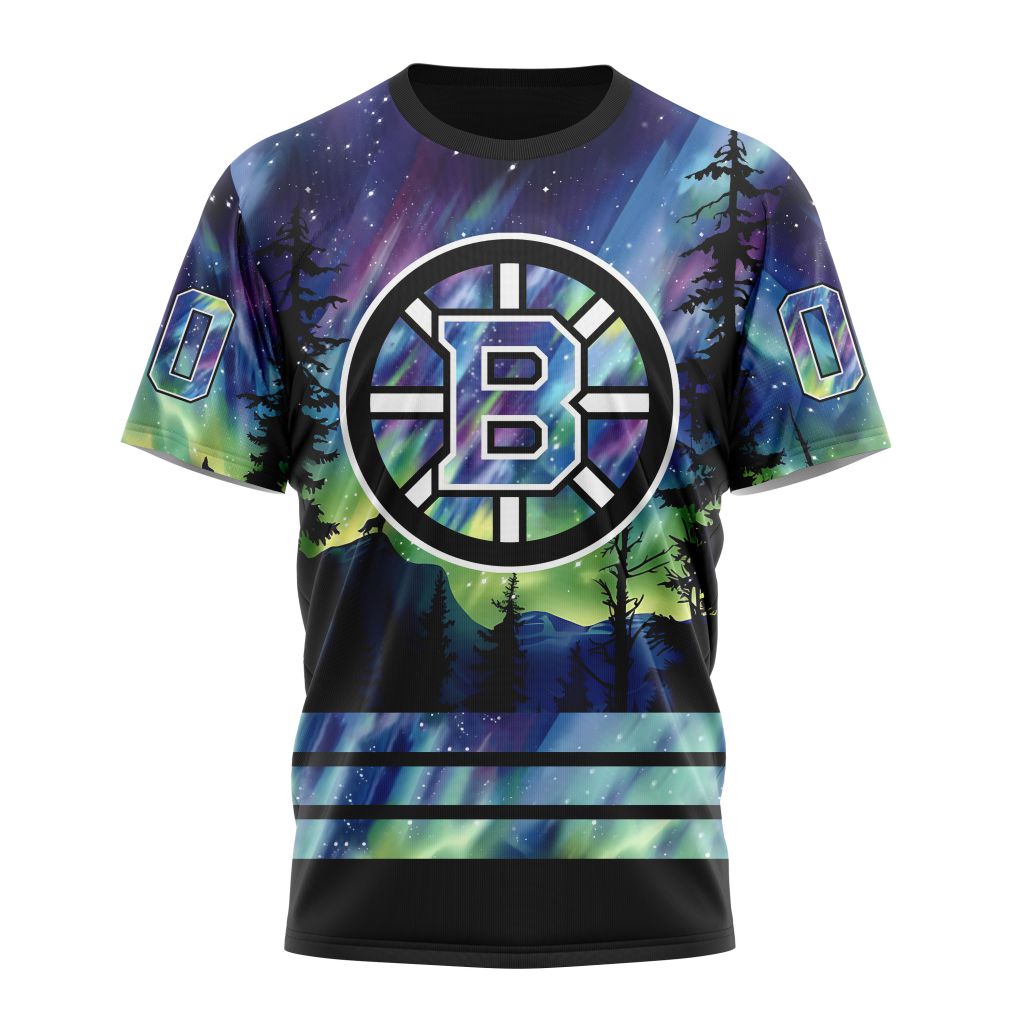 Boston Bruins With Northern Lights 01 Personalized Name And Number T-Shirt