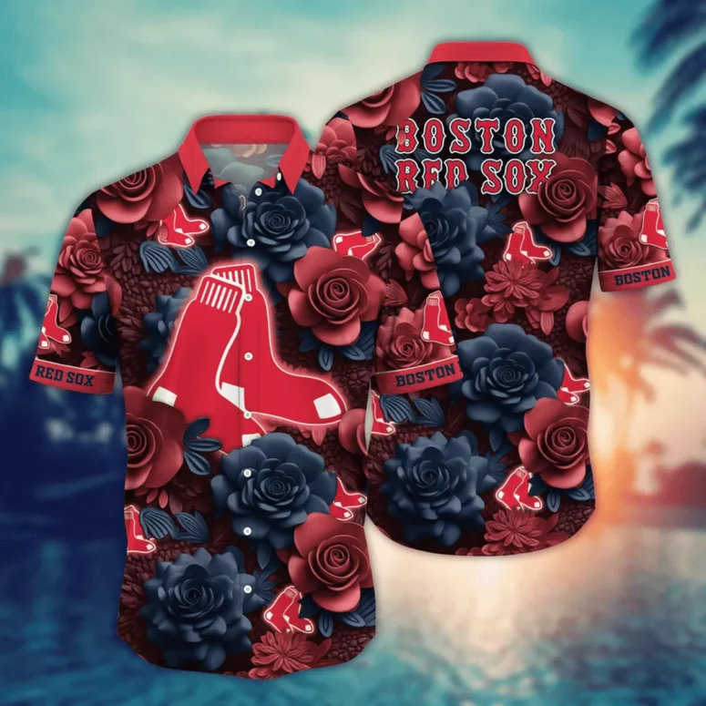 Boston Red Sox Midnight Rose Hawaiian Shirt