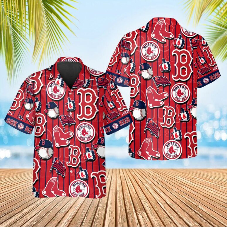 Boston Red Sox Pinstripe Logo Collage Hawaiian Shirt