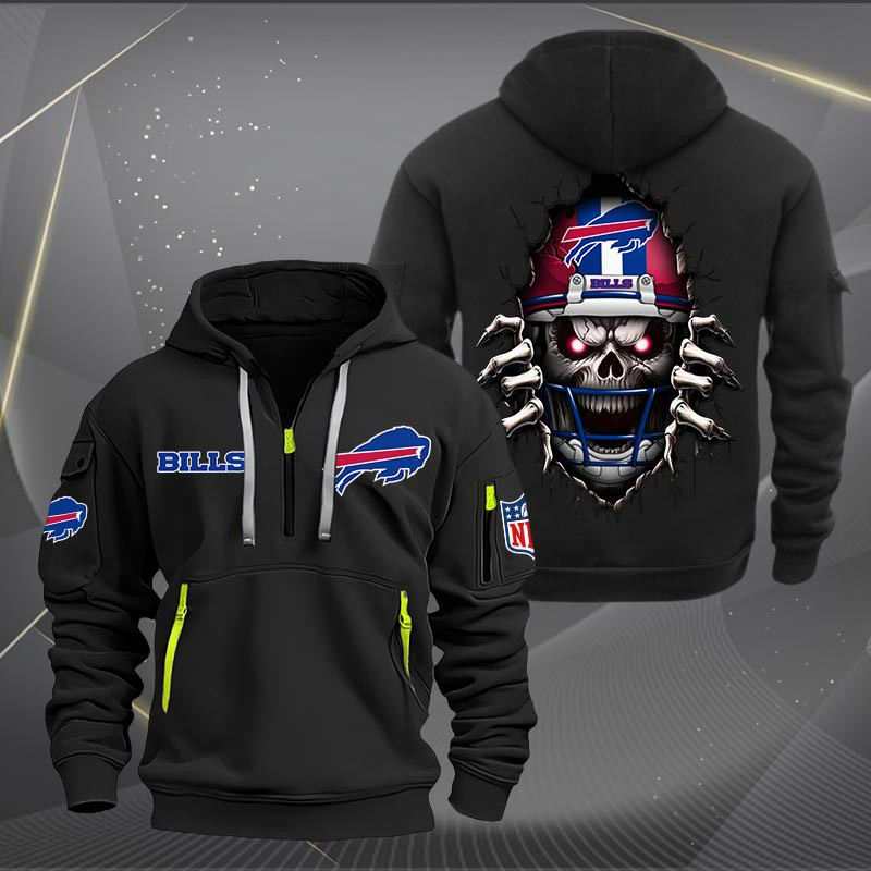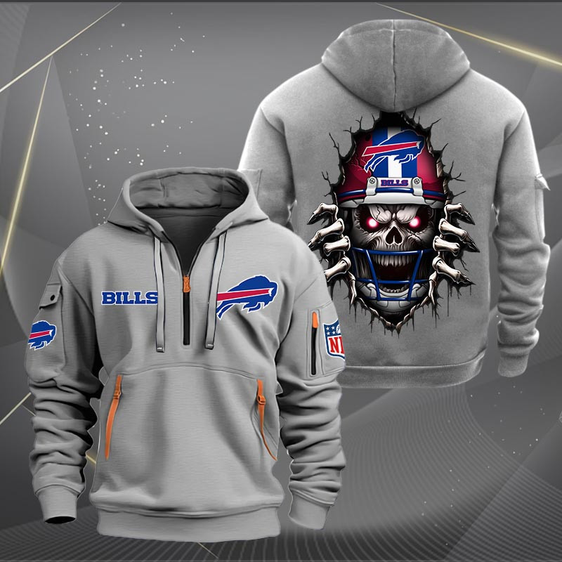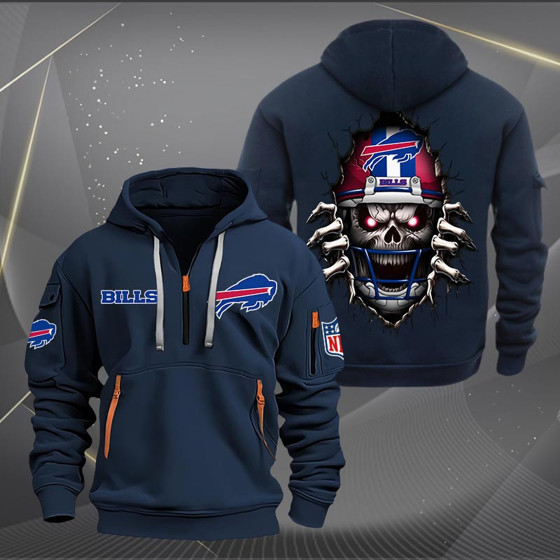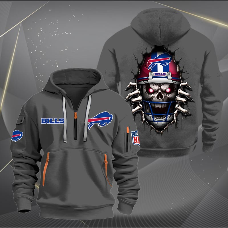 Buffalo Bills Football Player Skull Quarter Zip Hoodie