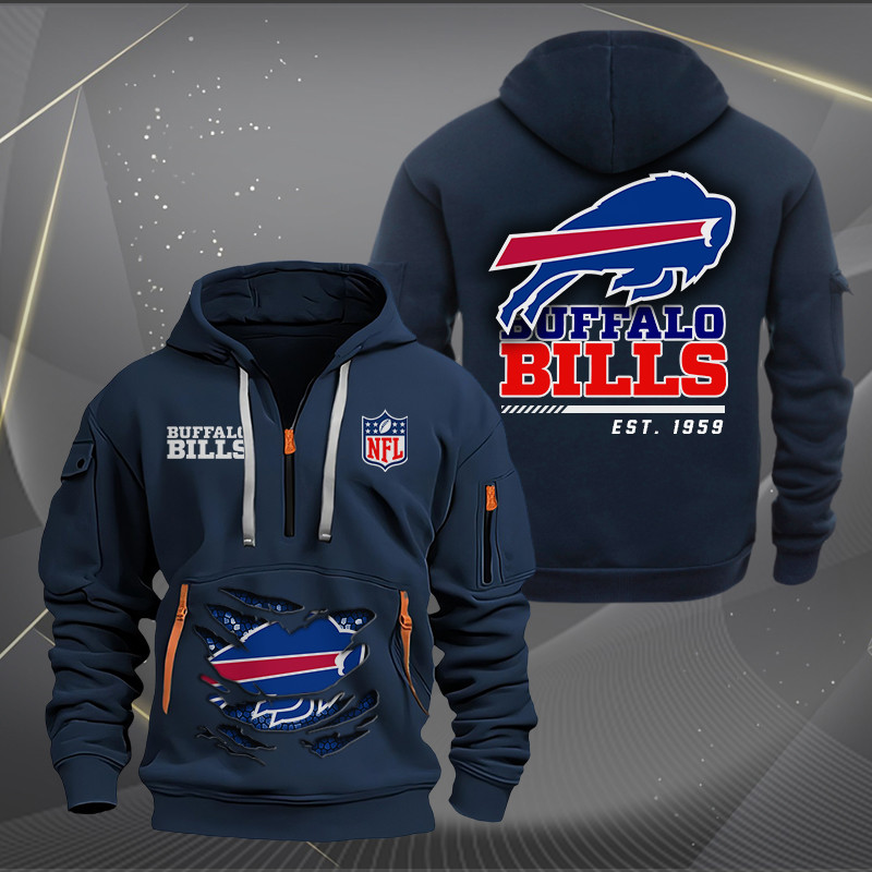 Buffalo Bills Monster Scratch 2 Logo NFL Quarter Zip Hoodie