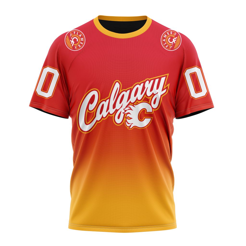 Calgary Flames Special Retro Gradient Design Personalized Name And Number T-Shirt