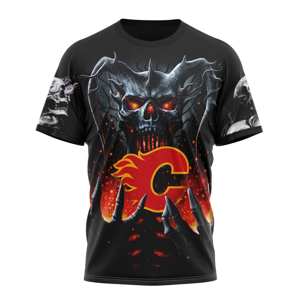 Calgary Flames Special Skull Art Design Personalized Name And Number T-Shirt