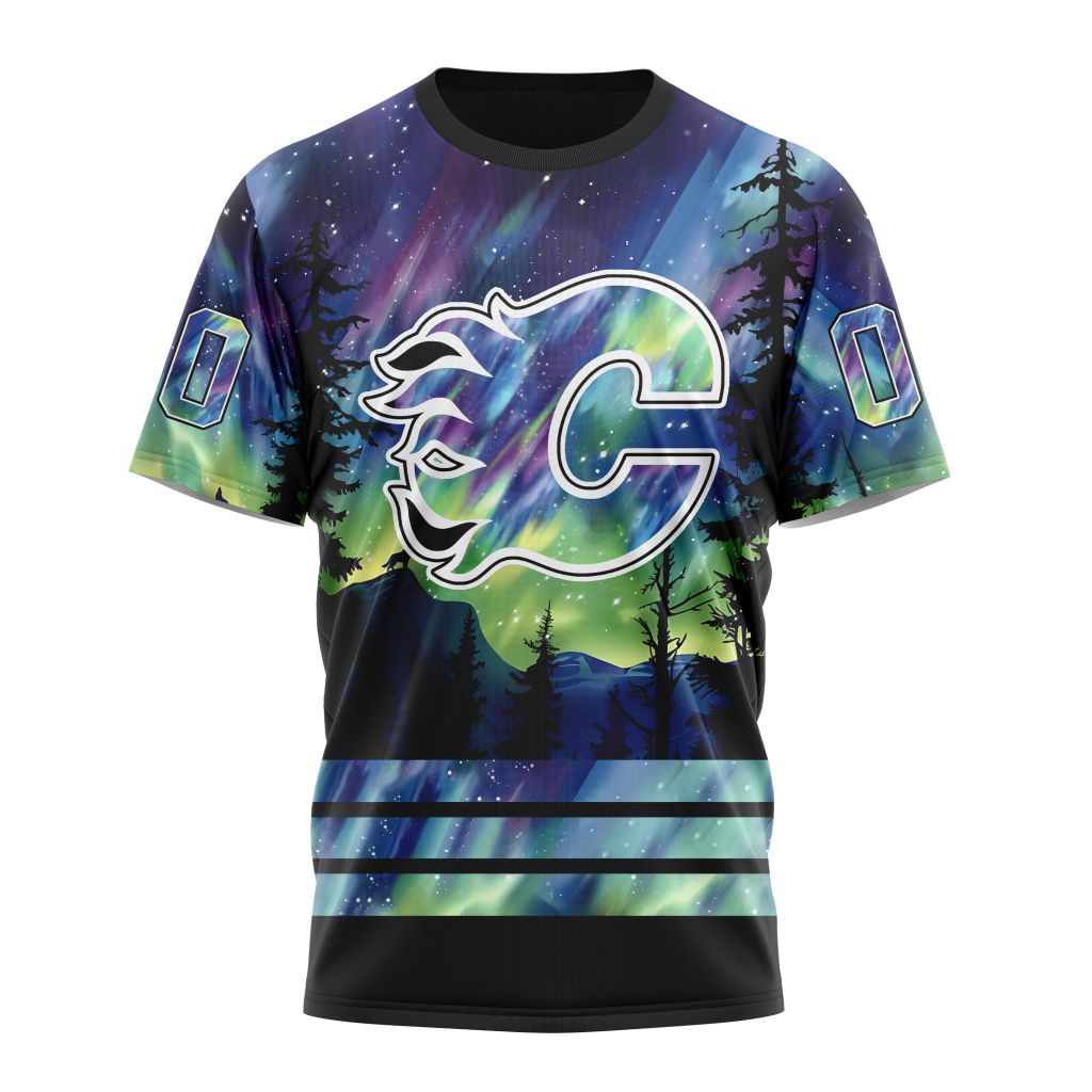 Calgary Flames With Northern Lights 01 Personalized Name And Number T-Shirt