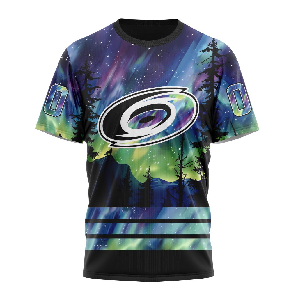 Carolina Hurricanes With Northern Lights 01 Personalized Name And Number T-Shirt