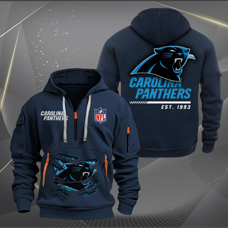 Carolina Panthers Monster Scratch 2 Logo NFL Quarter Zip Hoodie