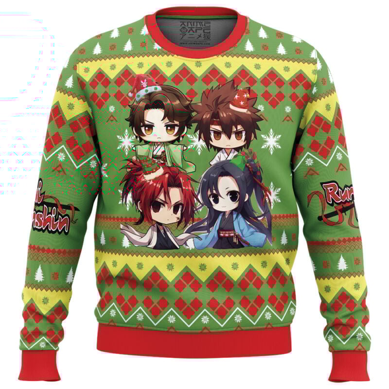 Buildercar – Chibi Christmas Rurouni Kenshin Samurai X Ugly Christmas Sweater Turn Heads This Holiday with Anime Ape’s Exclusive Ugly Christmas Sweater