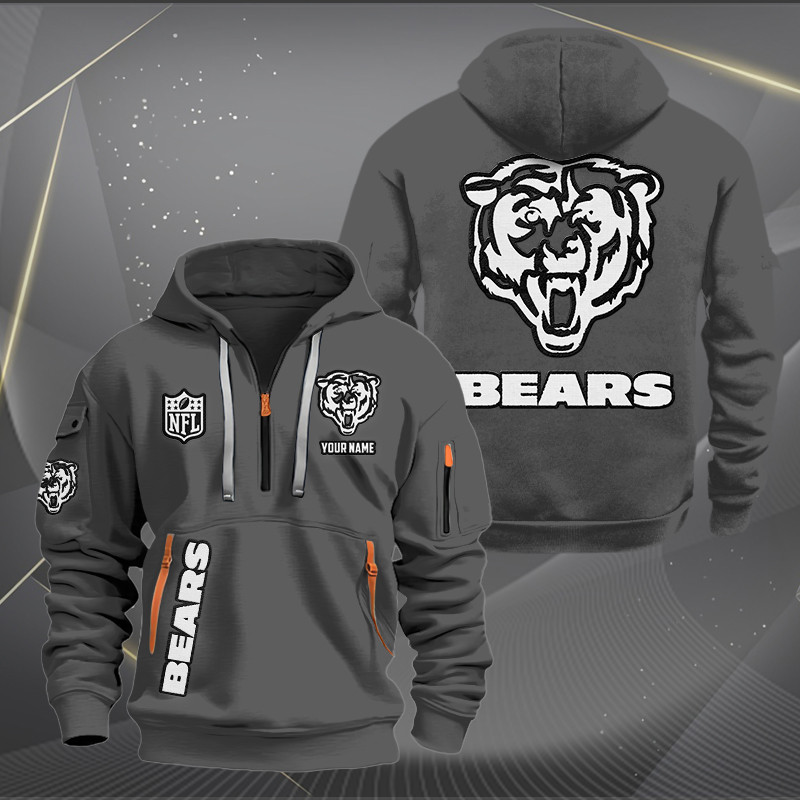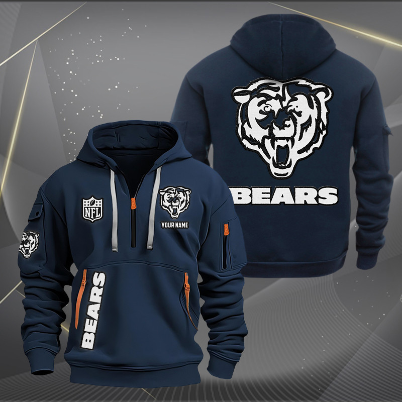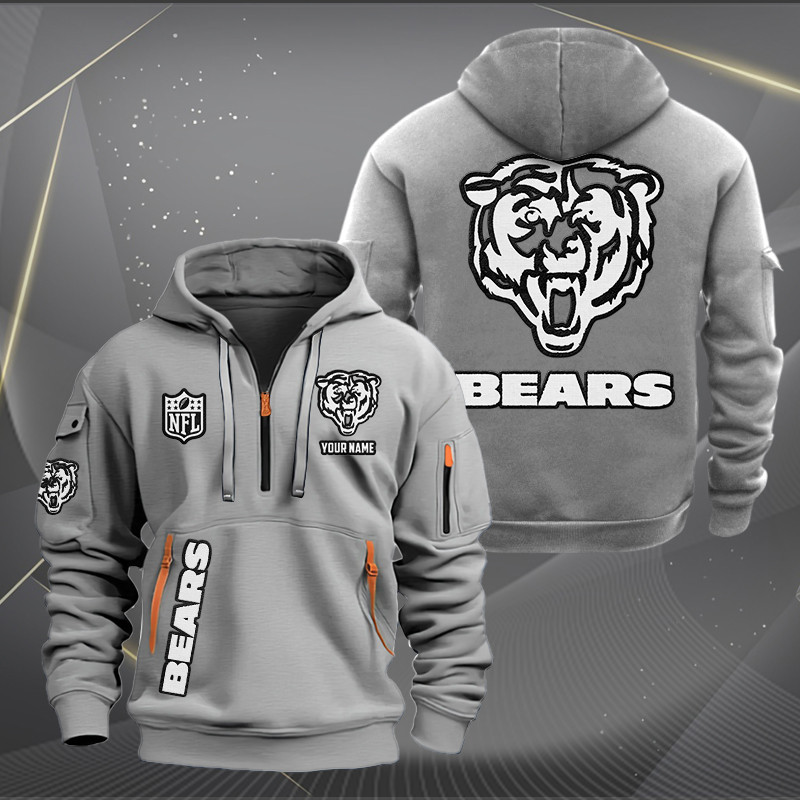Chicago Bears White Logo NFL Quarter Zip Hoodie