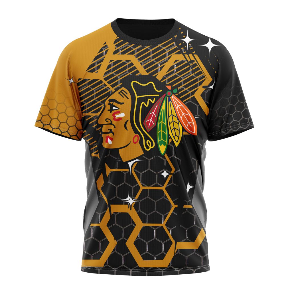 Chicago BlackHawks Design With MotoCross Syle Personalized Name And Number T-Shirt