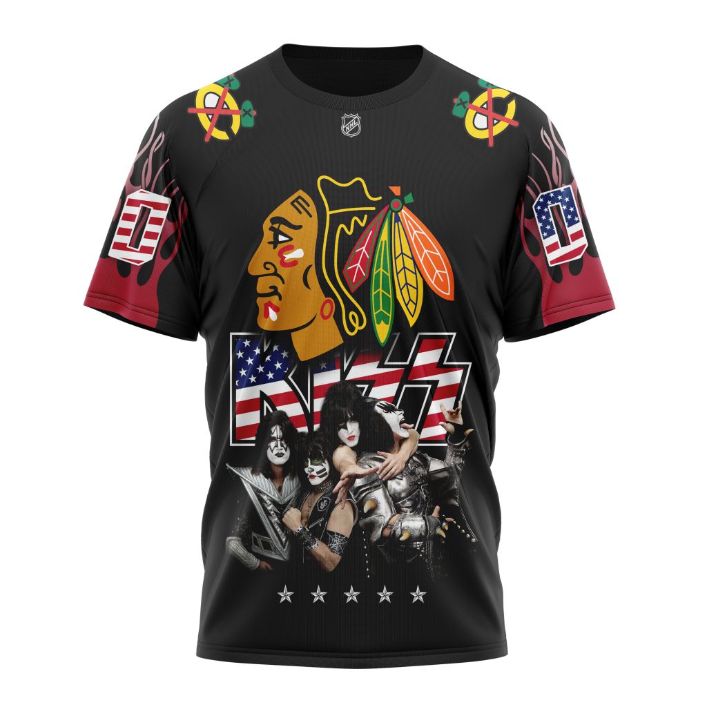Chicago BlackHawks feat KISS band Design Personalized Name And Number T-Shirt