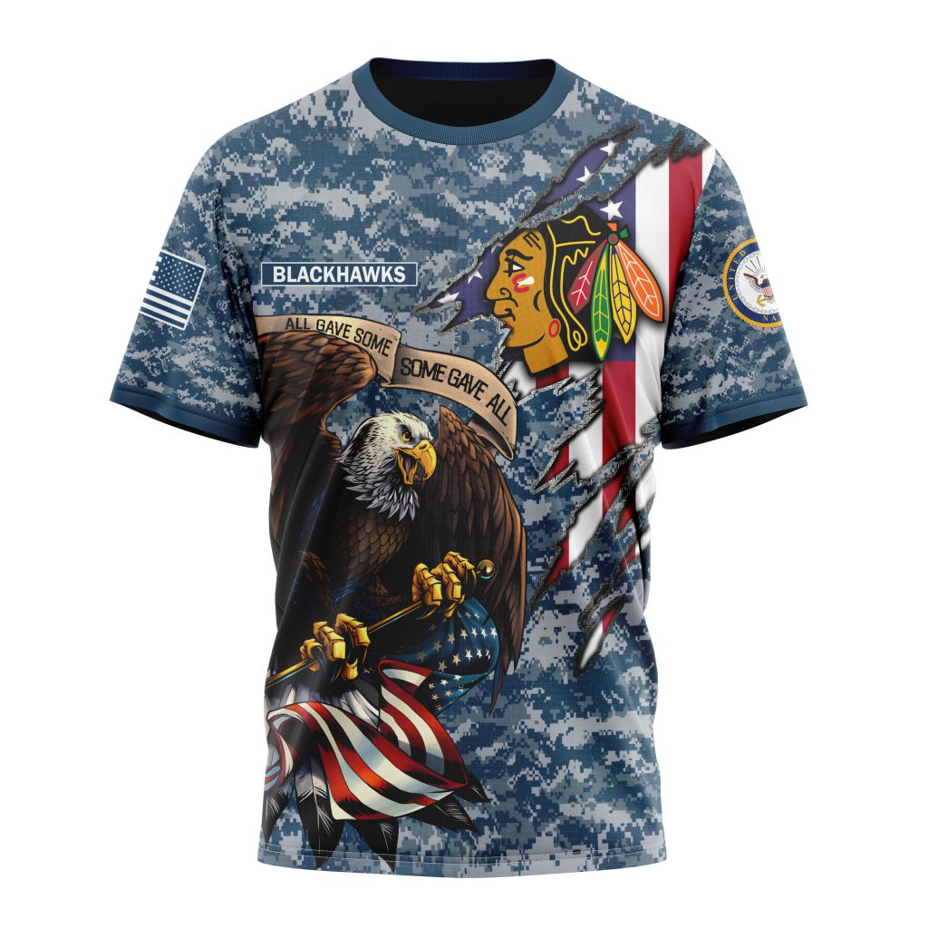 Chicago Blackhawks Honor US Navy Veterans Personalized Name And Number T-Shirt