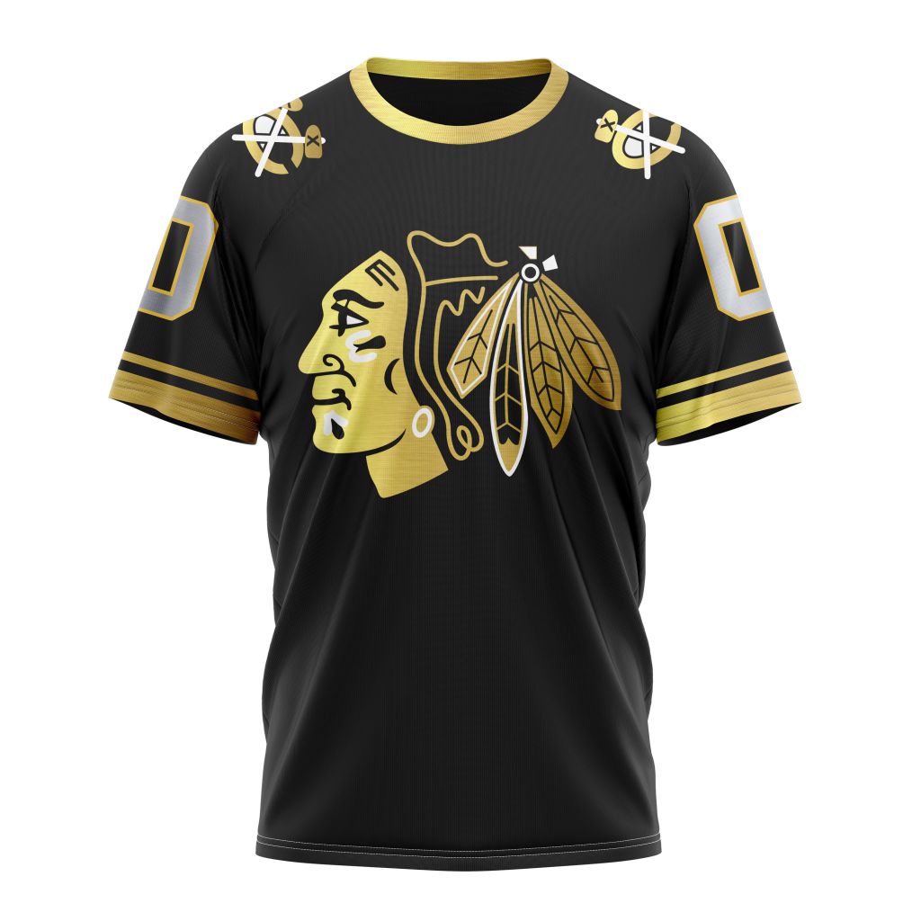 Chicago Blackhawks Special Black And Gold Design 01 Personalized Name And Number T-Shirt