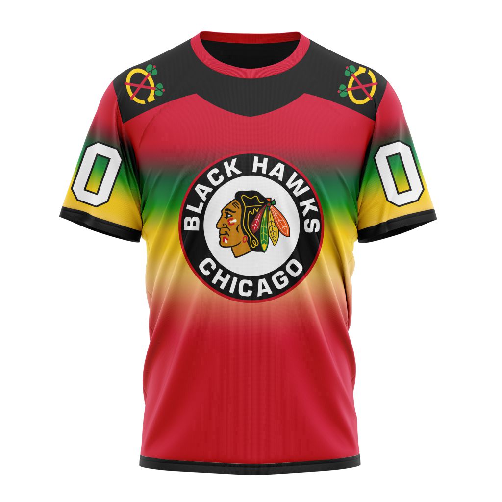 Chicago Blackhawks Special Retro Gradient Design Personalized Name And Number T-Shirt