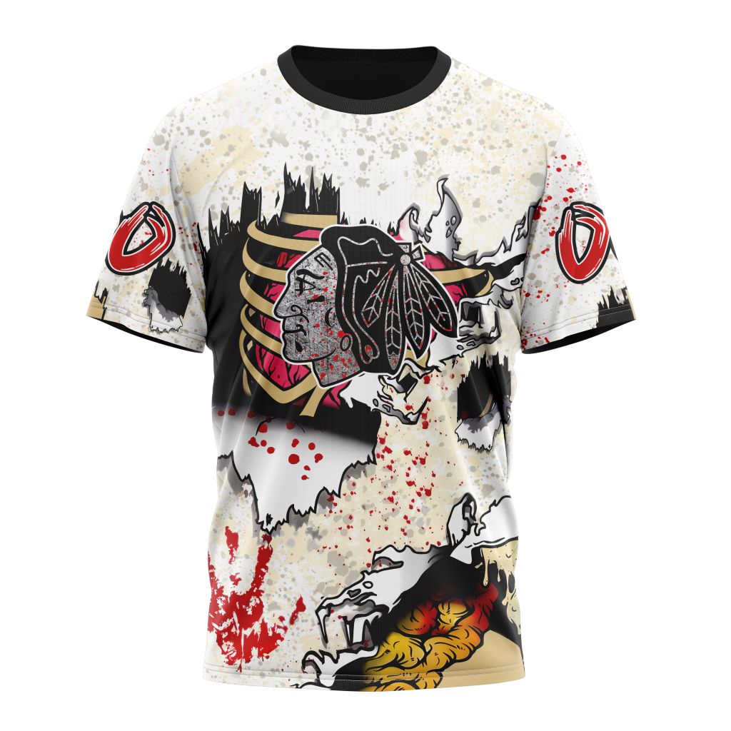 Chicago Blackhawks Special Zombie Style For Halloween Personalized Name And Number T-Shirt
