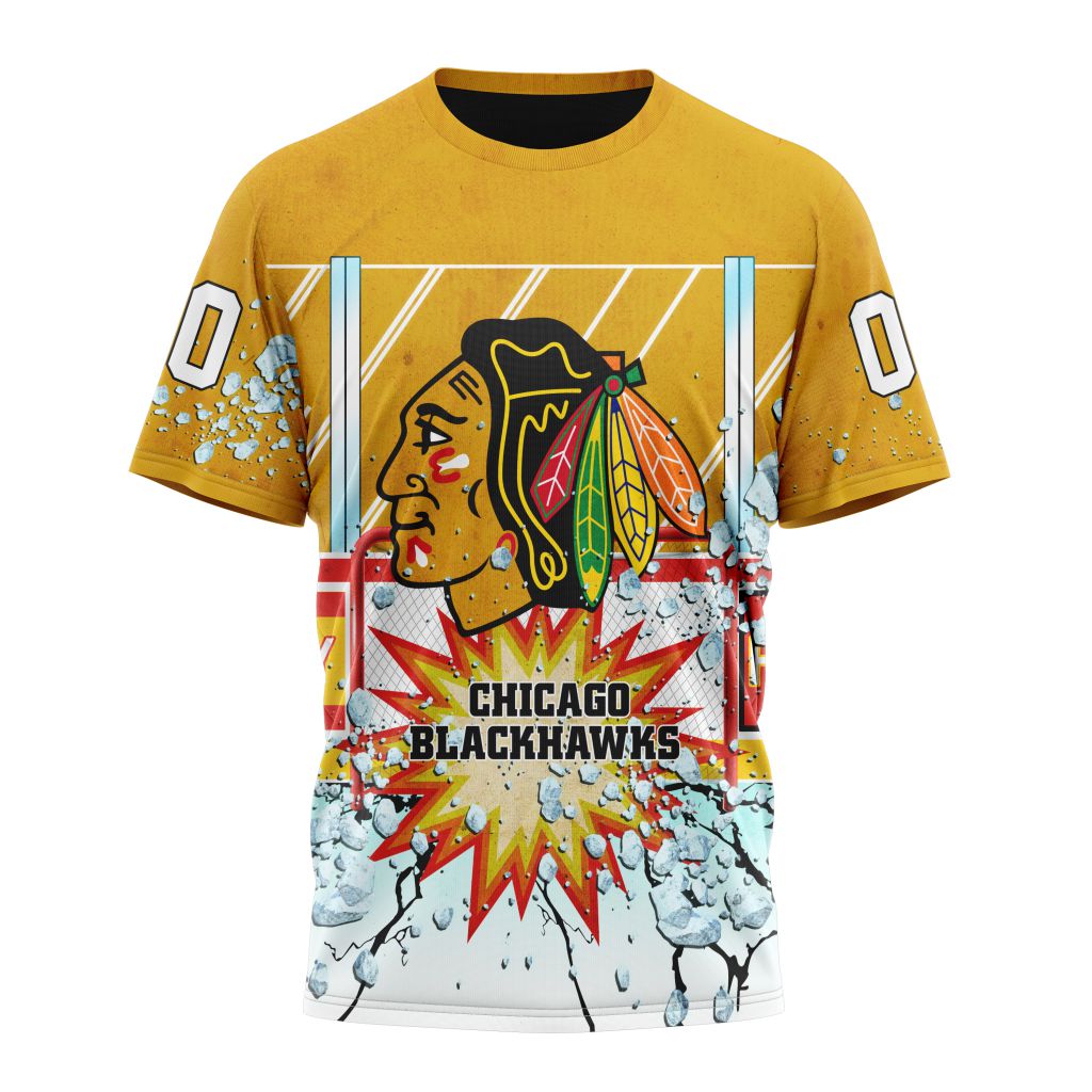 Chicago BlackHawks With Ice Hockey Arena Personalized Name And Number T-Shirt