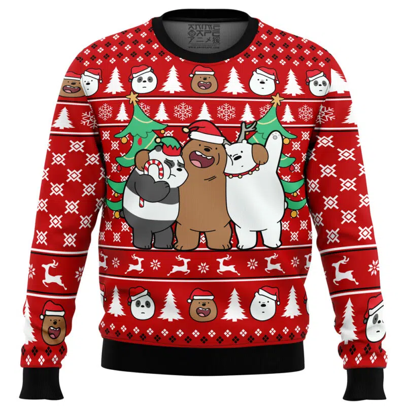 Buildercar – Christmas Bears We Bare Bears Ugly Christmas Sweater Turn Heads This Holiday with Anime Ape’s Exclusive Ugly Christmas Sweater